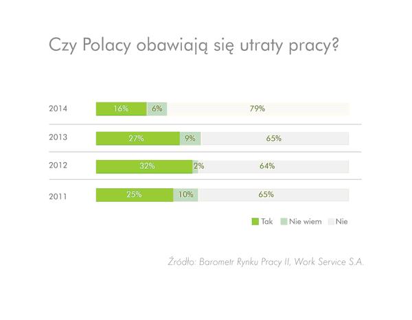 Kiedy w 2013 roku komentowaliśmy pierwszą edycję naszego barometru, mieliśmy do czynienia z dużą niepewnością gospodarczą, co bezpośrednio przekładało się na trudną sytuację na rynku pracy i silne cechy tzw. Rynku Pracodawcy. W tym roku, w związku z większym popytem inwestycyjnym ze strony polskich firm i przyspieszeniem polskiej gospodarki, wskaźniki obrazujące rynek pracy poprawiły się. W czerwcu stopa bezrobocia, zgodnie z szacunkami Ministerstwa Pracy i Polityki Społecznej, była najniższa od dwóch lat i wyniosła 12,1%. W miesiącach wakacyjnych może być jeszcze niższa, wzmocniona dodatkowo sezonem letnim – mówi Tomasz Hanczarek, prezes zarządu Work Service S.A. Pozytywne sygnały zaczyna odczuwać także statystyczny Polak. Z przeprowadzonego przez nas badania wynika, że prawie 8 na 10 pracowników jest spokojnych o swoje zatrudnienie. Jest to wynik o 14 p.p. lepszy do ubiegłorocznego i jednocześnie najwyższy od kilku lat– dodaje Tomasz Hanczarek. Najlepiej pewność pracy i rosnący popyt na polskiego pracownika ilustruje mocny skok oczekiwań płacowych.