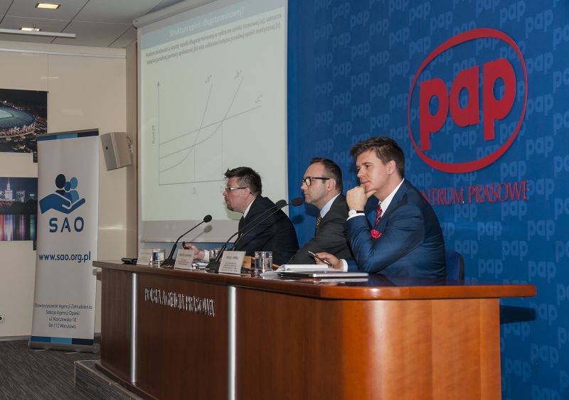 Goście spotkania zorganizowanego przez SAZ i SAO przedstawiają informacje na temat przyszłości branży opiekuńczej w kontekście specyficznych zmian demograficznych i społecznych, które można zaobserwować zarówno w skali całej Europy, jak i w perspektywie Polski.