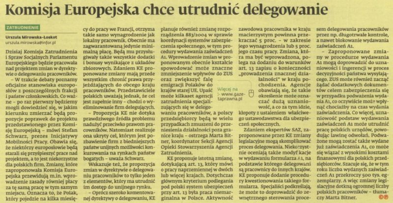 Dziennik Gazeta Prawna: KOMISJA EUROPEJSKA CHCE UTRUDNIĆ DELEGOWANIE